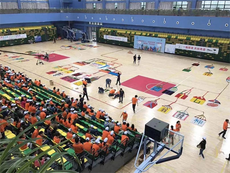 整幅多米诺骨牌阵的码放会将任务分解落实到小组,再细化到个人。活动要求在规定的时间内完成几千甚至上万枚骨牌的码放,每位参与者只有加强与队友的沟通与协作,才能共同见证后激动人心的推牌时刻